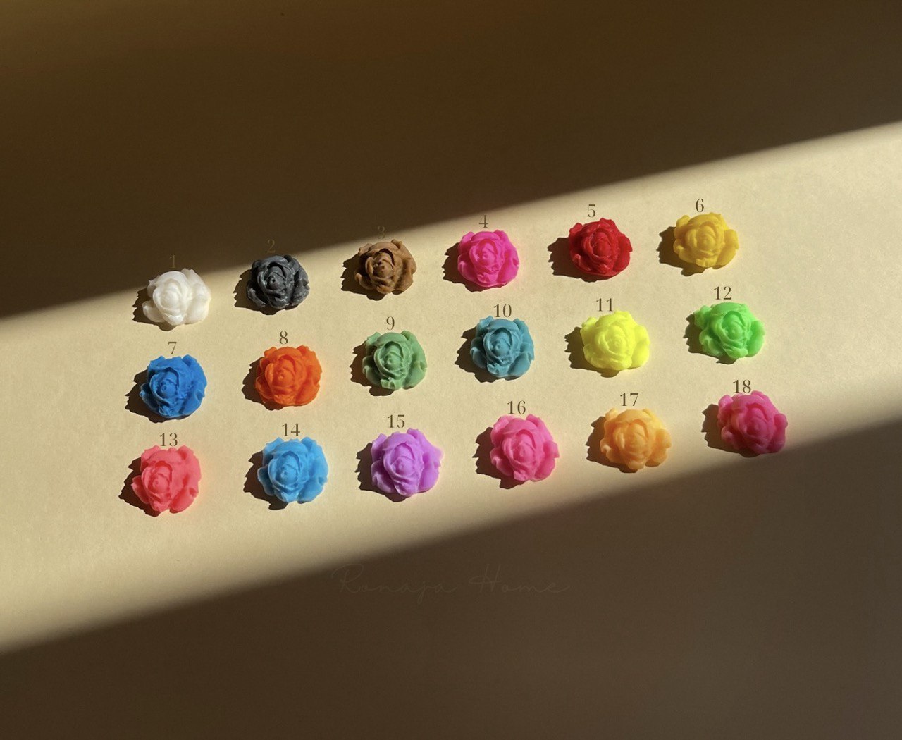 Finden Sie Ihre Wunschfarbe nicht auf der Website? Schreiben Sie mir im Chat eine Nachricht mit der Farbnummer aus dem Foto oben und ich fertige eine einzigartige Kerze genau für Sie in Handarbeit an: