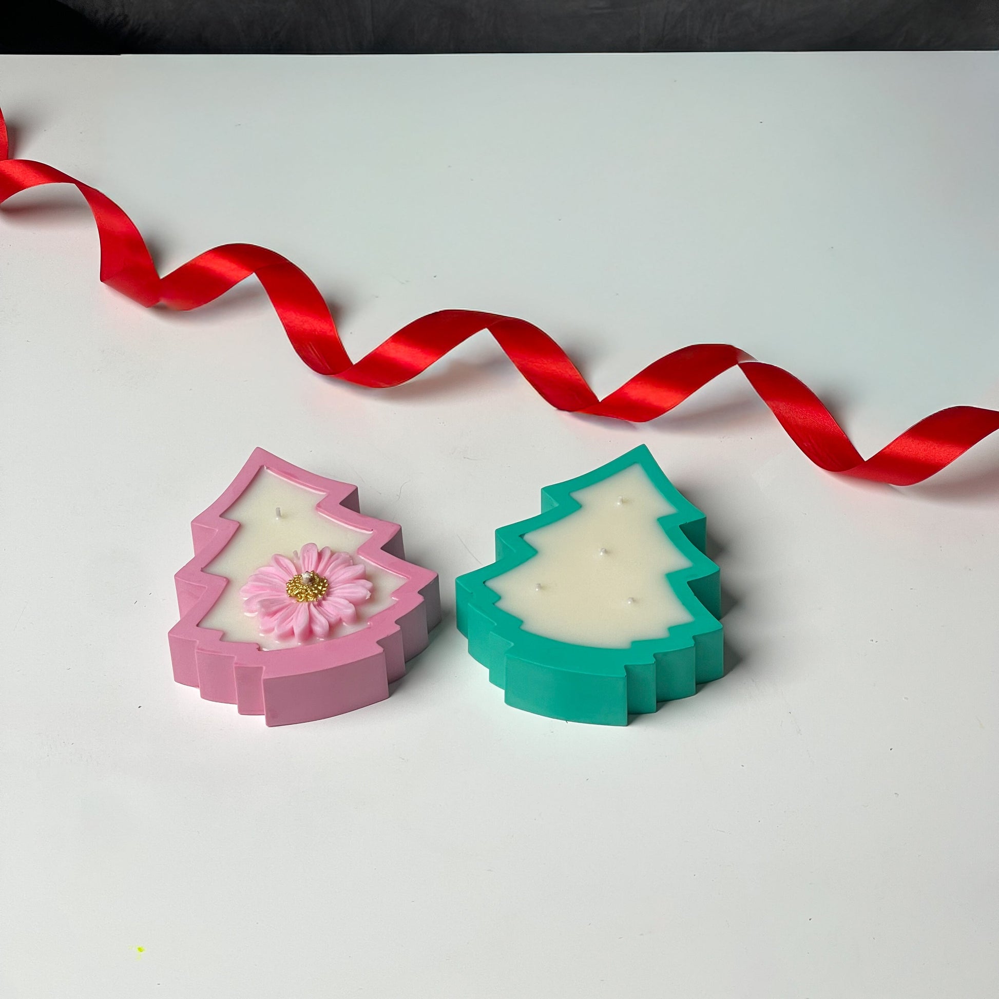 Add a touch of festive charm to your home with this handmade Christmas Tree Candle with a delicate flower detail, crafted from eco-friendly soy wax in Vienna.